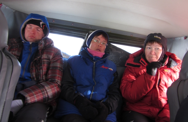 В машине.