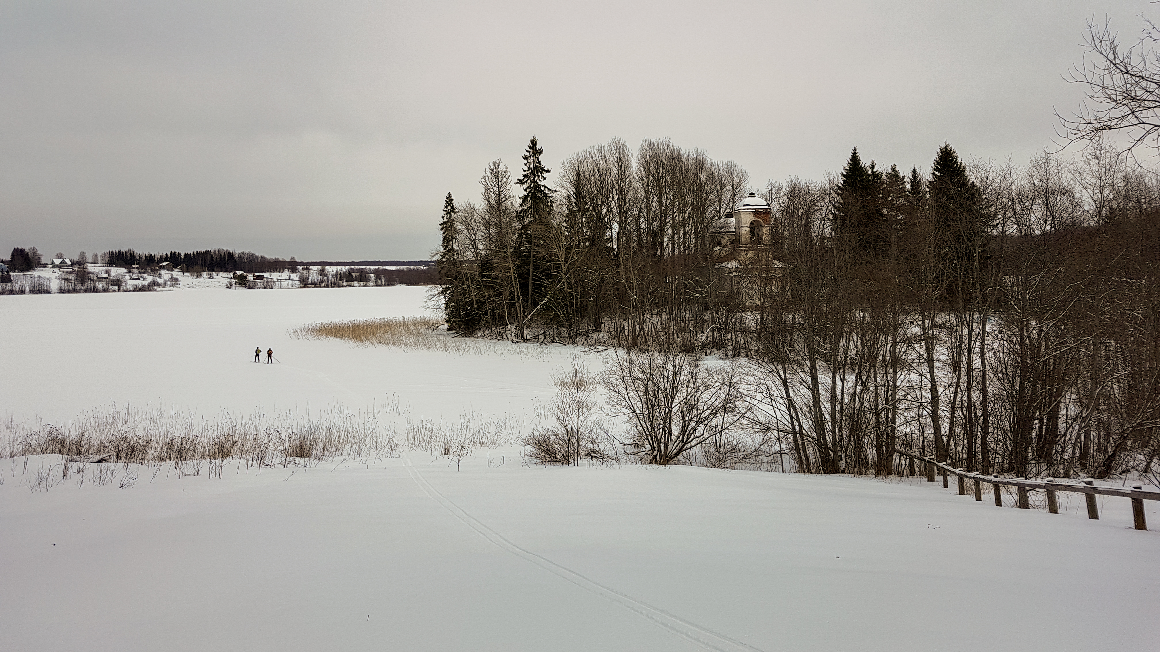 Кнутово. Спуск в Соровскому озеру. Видна Вознесенская церковь.