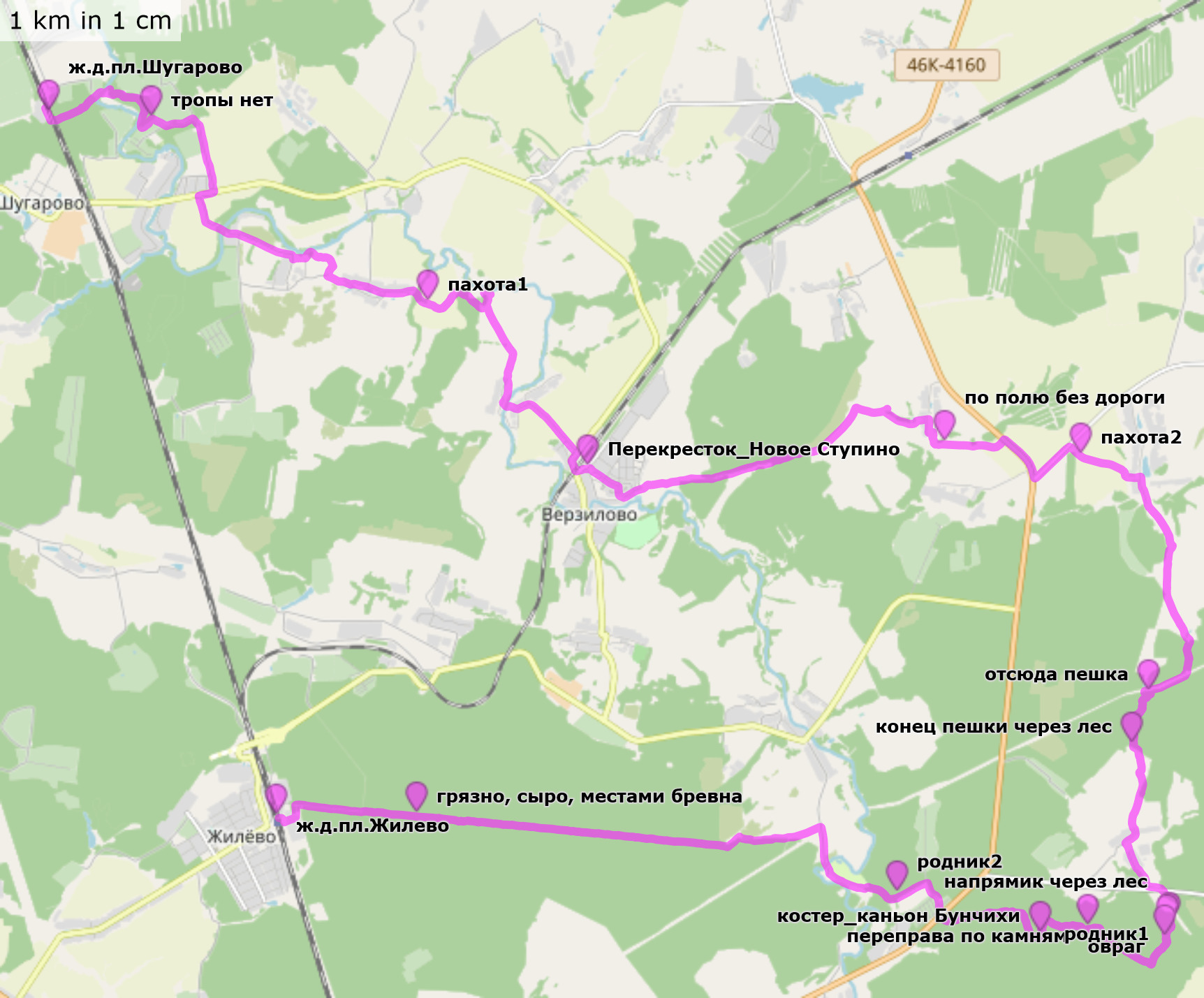 Трек и точки (файл .gpx для скачивания, 40 км)