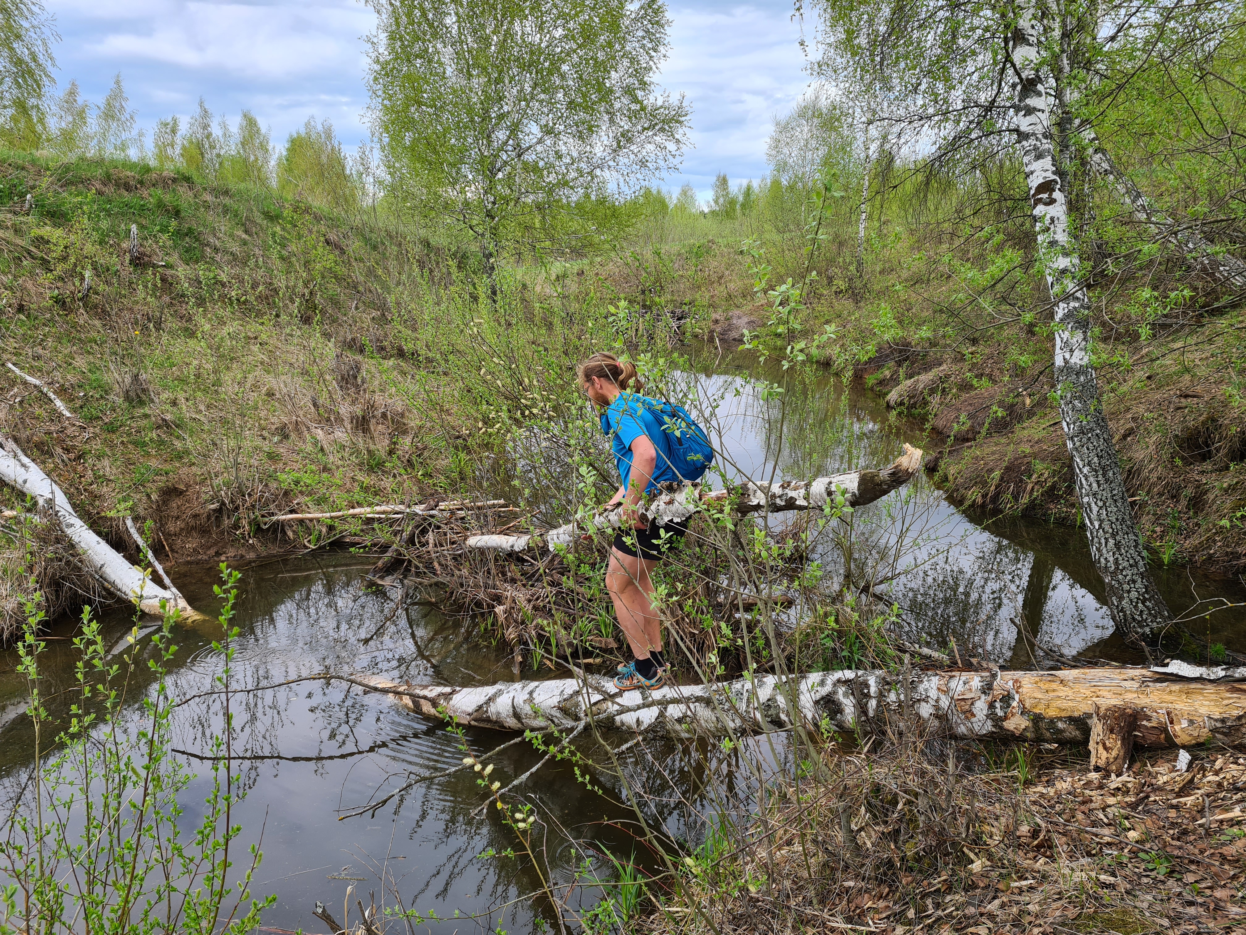 Переходим Трешню по бобровой плотине.