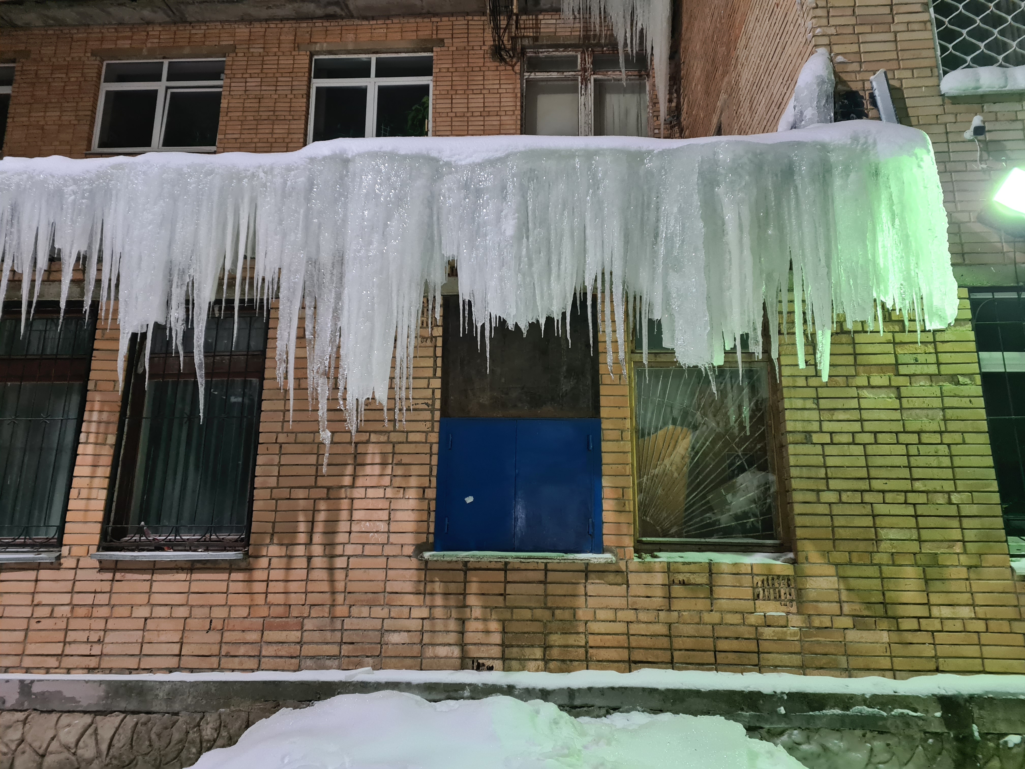 Сосульки на здании почты с обратной стороны.