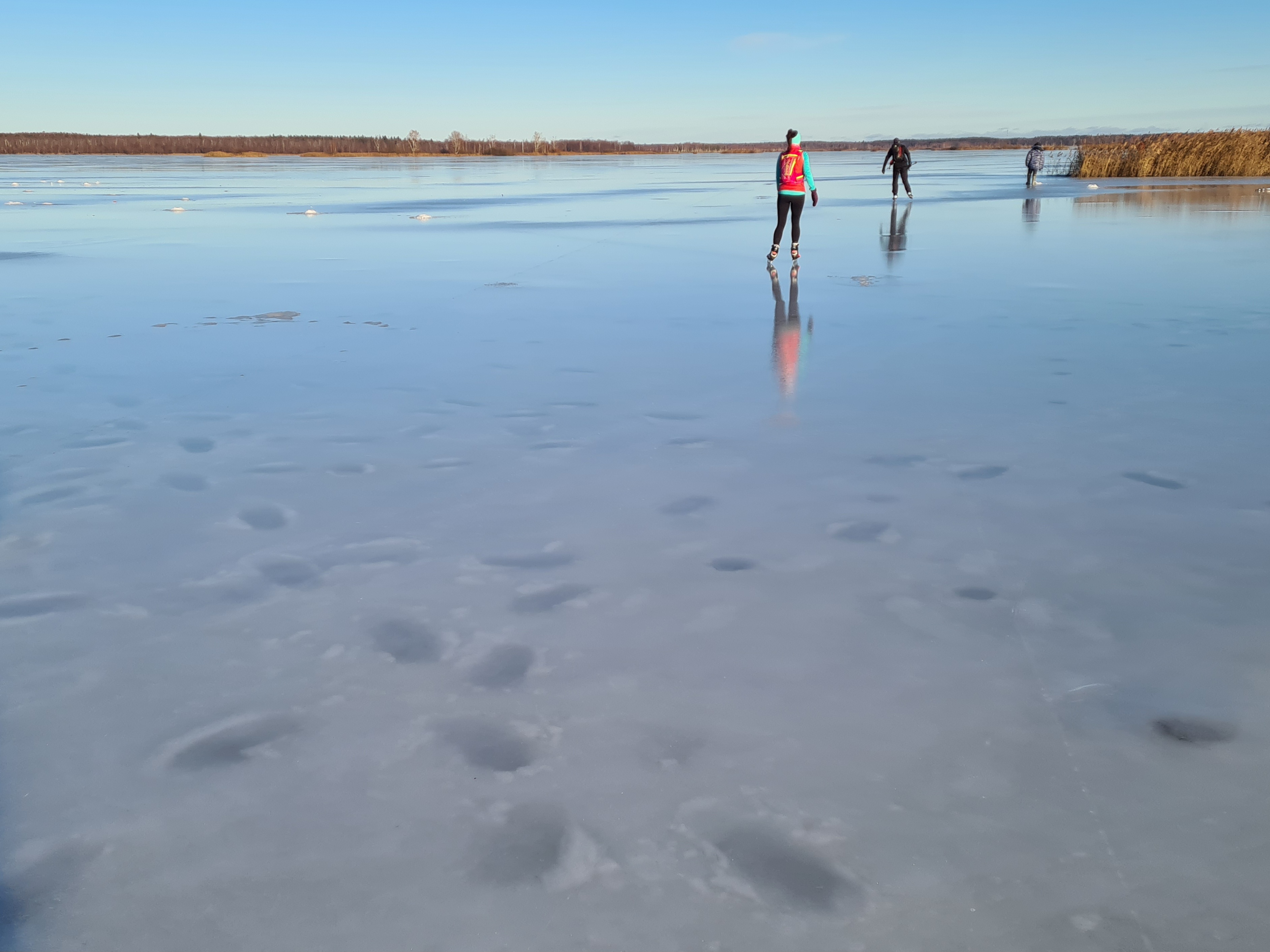Следы рыбаков затопило в оттепель и заморозило, поэтому они не очень мешают катать.
