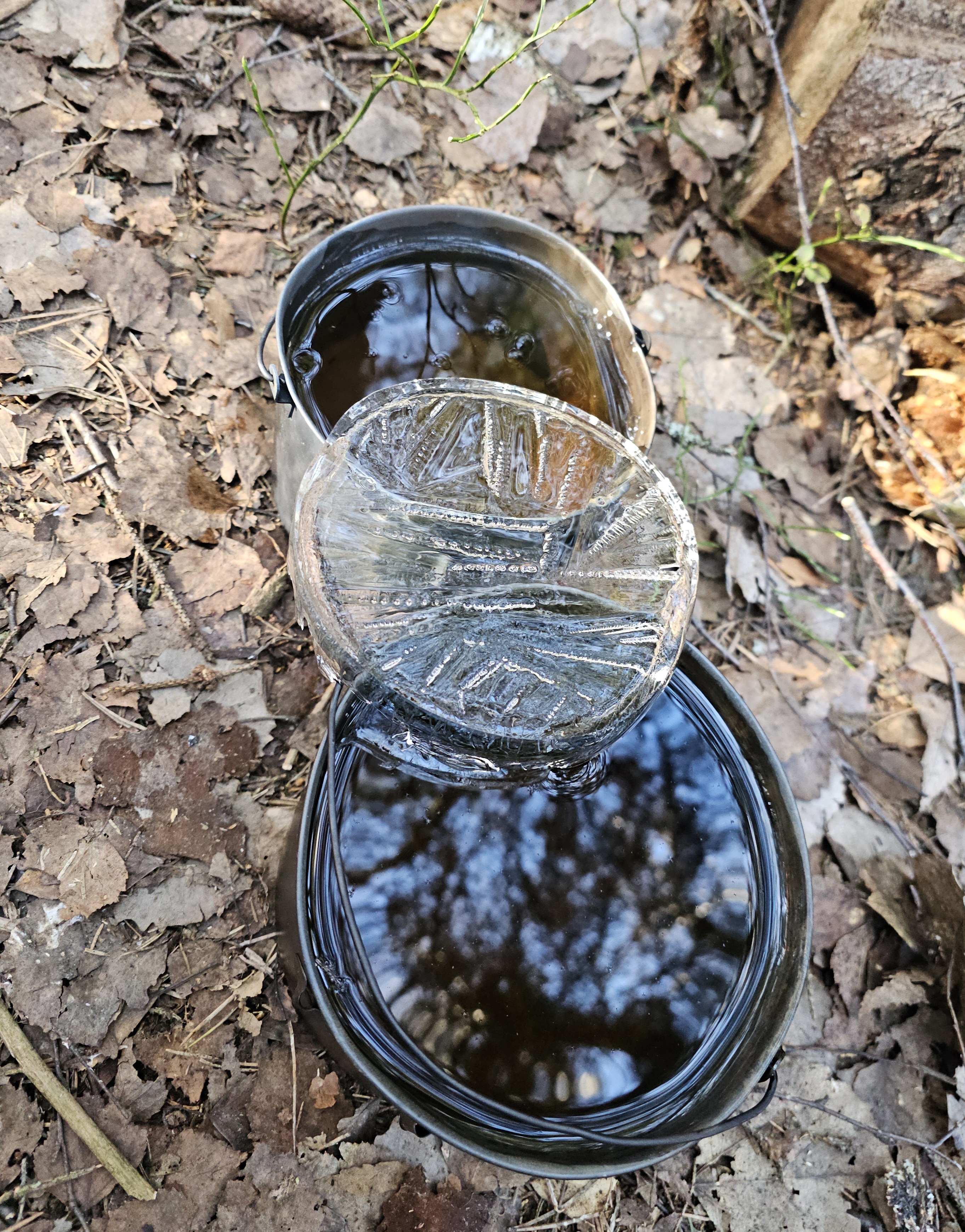 Утро 12 апреля. Вода в кане покрылась льдом.