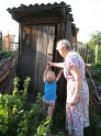 2 июля. Алеша с дедом поливают лук. |