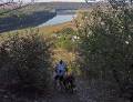 Вообще-то, как выяснилось, мы зря полезли в эту гору в Велтюжени - нужная дорога шла вдоль реки. Но не возвращаться же... В итоге долго бруляли в каких-то садах, спрашивали дорогу, потеряли кучу времени. К Днестру спускались пешком по крутой каменистой тропе.