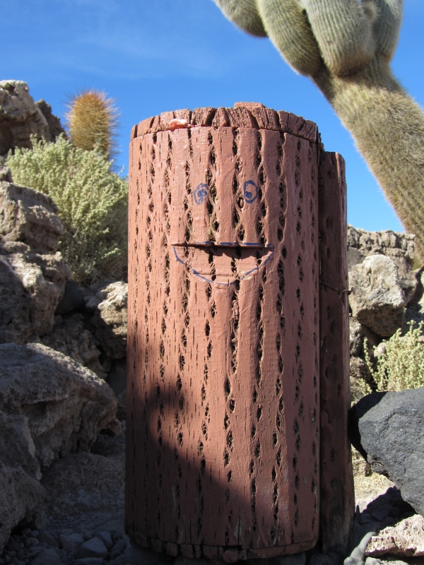Урна из высушенного и покрашенного стебля кактуса.