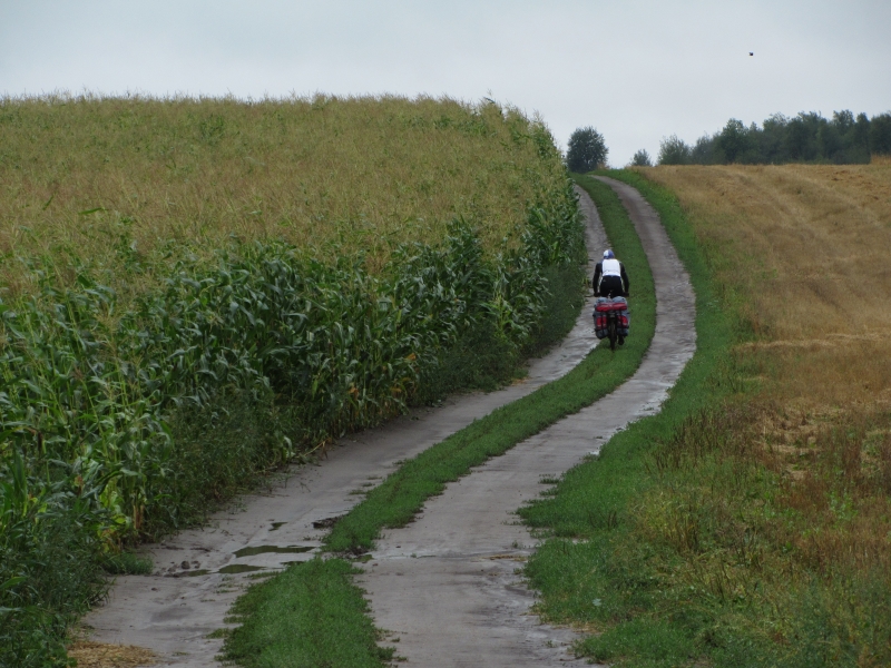 Ехать можно только по траве, иначе грязь наматывается на колеса.