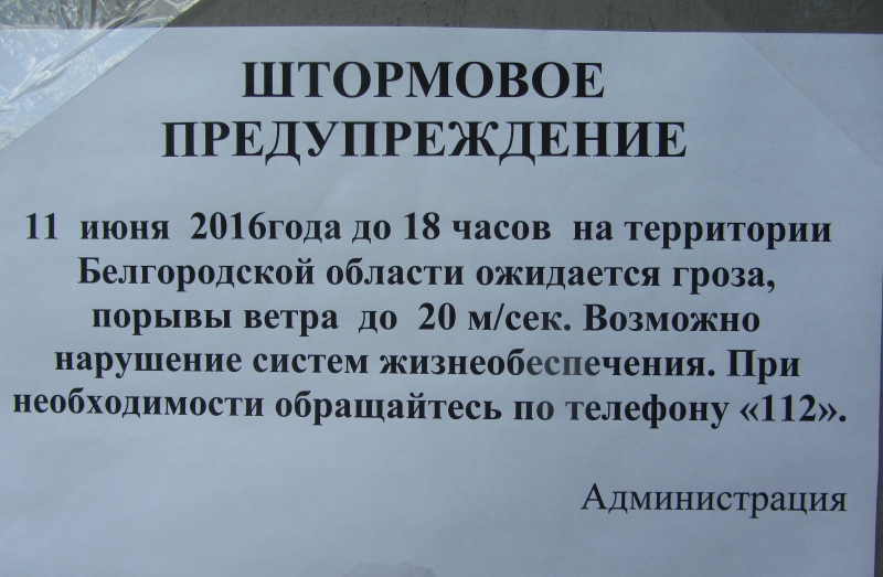 12 июня. Объявление у магазина в Архангельском о вчерашнем шторме.