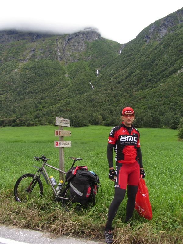 Поселок Eikesdal. Мы спустились вооон оттуда, где начинается водопад.