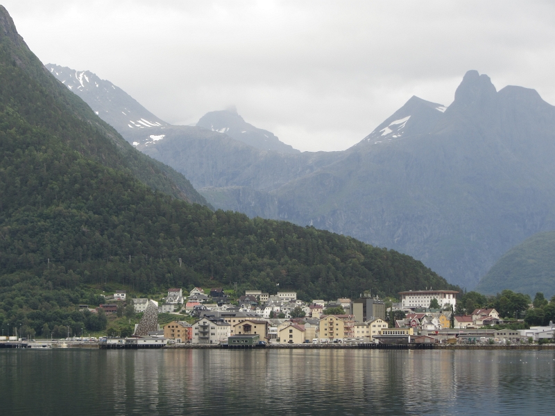 Кажется, что Åndalsnes рядом, но до него 10 км в объезд фьорда. Под дождем.