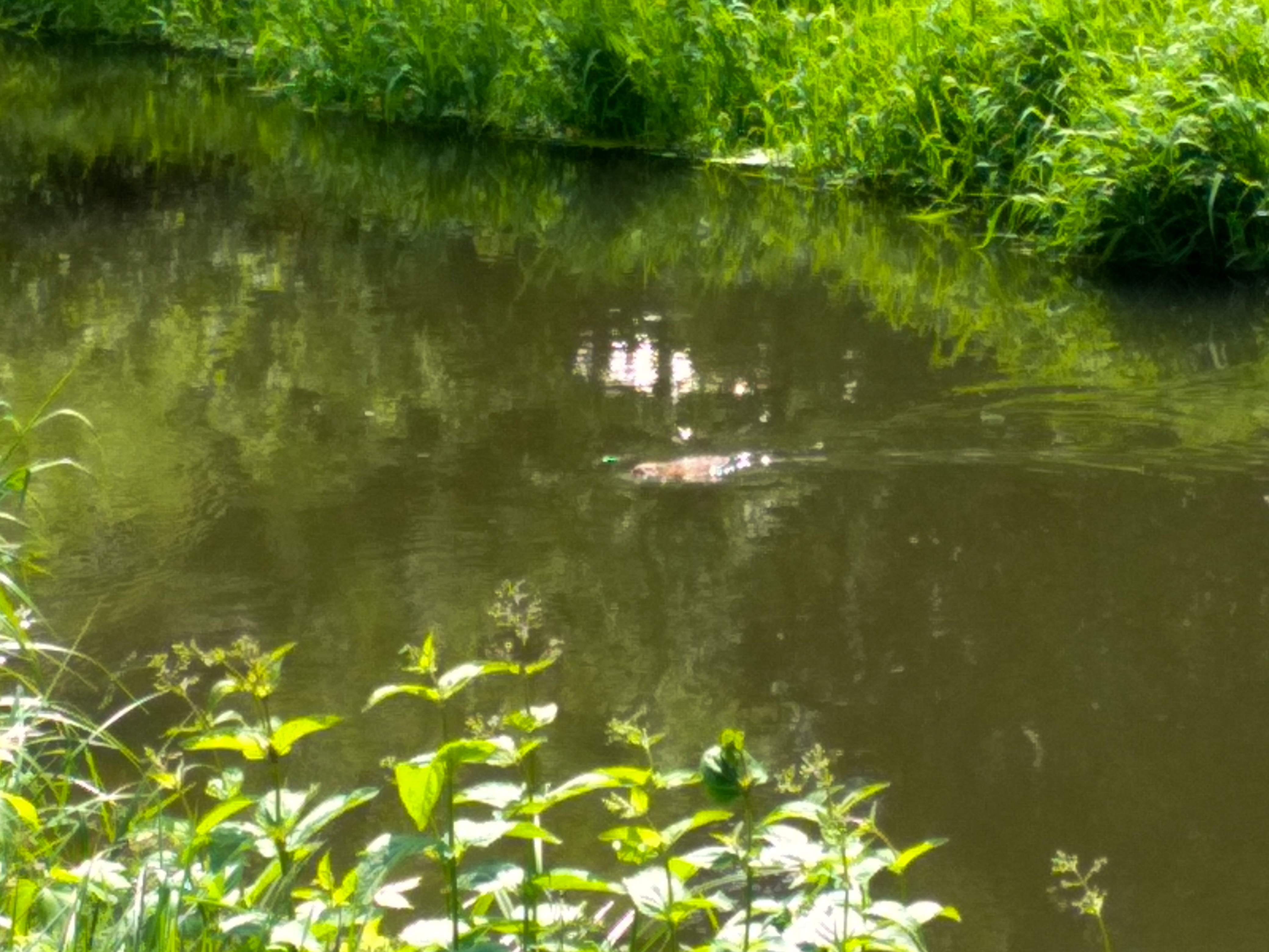 Какое-то животное переплывает реку.