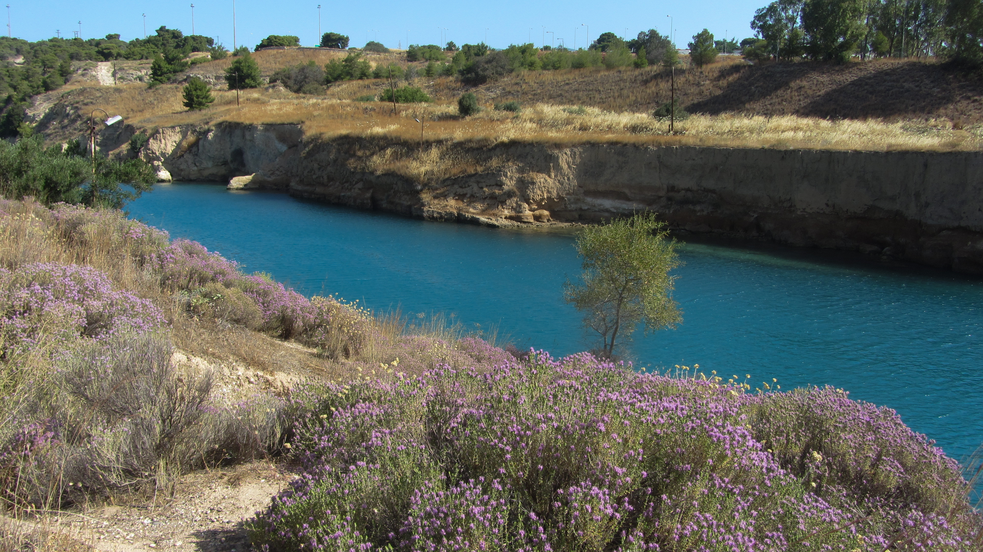 Коринфский канал, соединяющий Коринфский залив Ионического моря (на севере) и залив Сароникос Эгейского моря (на юге).