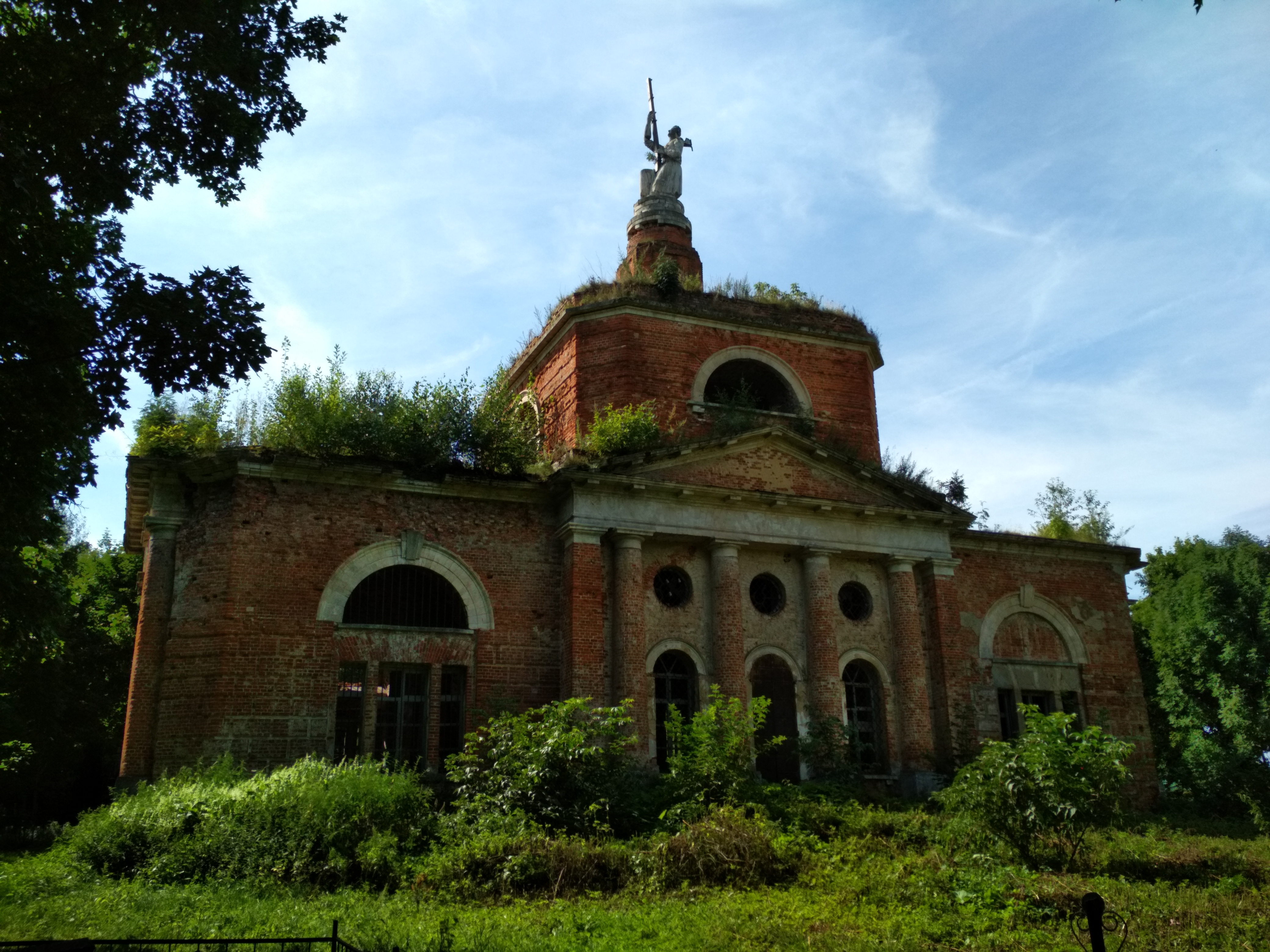 Аксиньино. Церковь Спаса Нерукотворенного Образа с фигурой Архангела Михаила вместо креста.