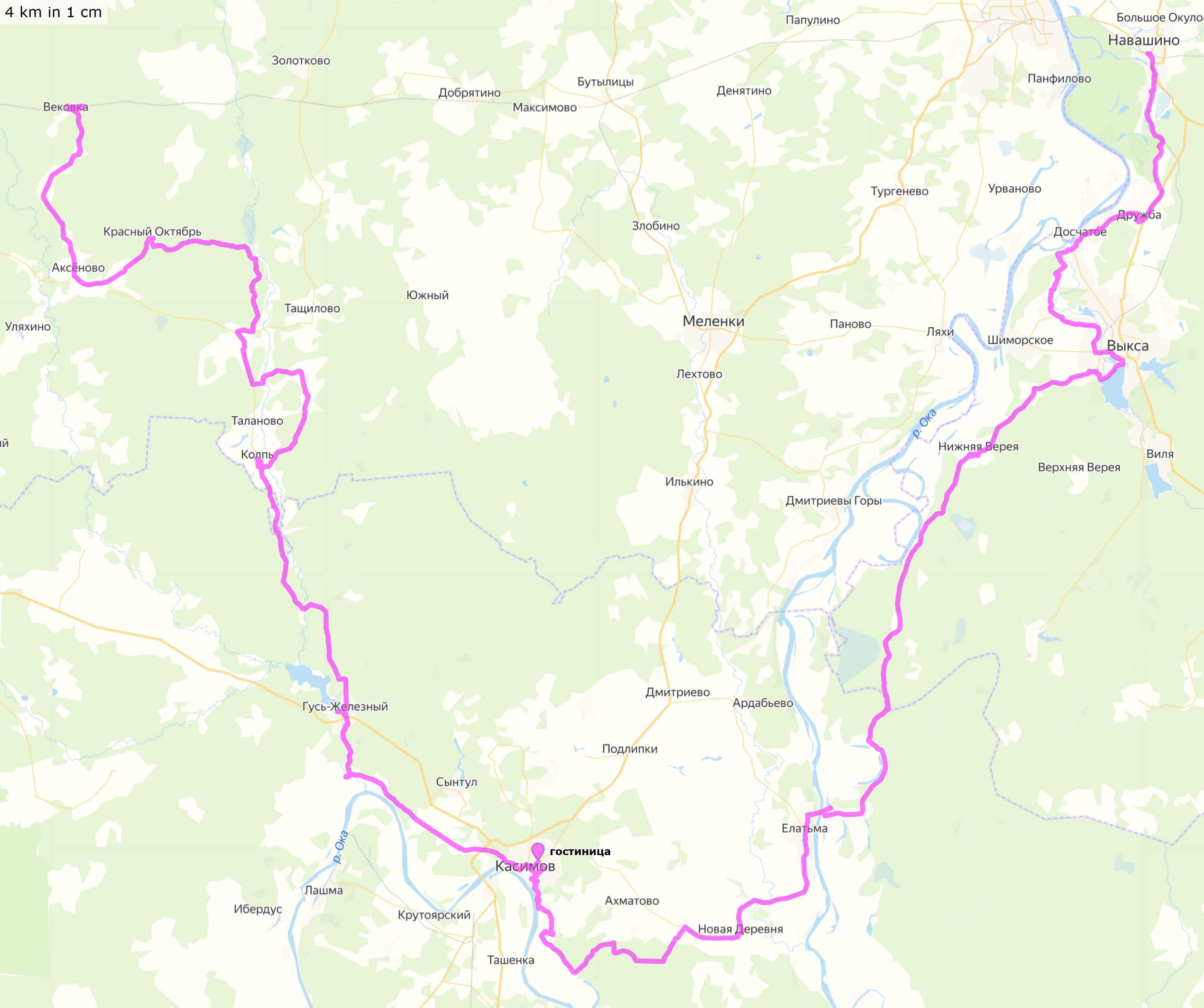 21-22 августа 2021Нижегородская, Рязанская и Владимирская областиНавашино - р.Ока - Елатьма - Касимов (гостиница) - Гусь-Железный - р.Гусь - р.Колпь - Вековка Трек и точки (файлы .gpx для скачивания, 149+121 км) Трек и точки nakarte Трек и отчет в Strava Некоторые мои фото в моём ФБ |