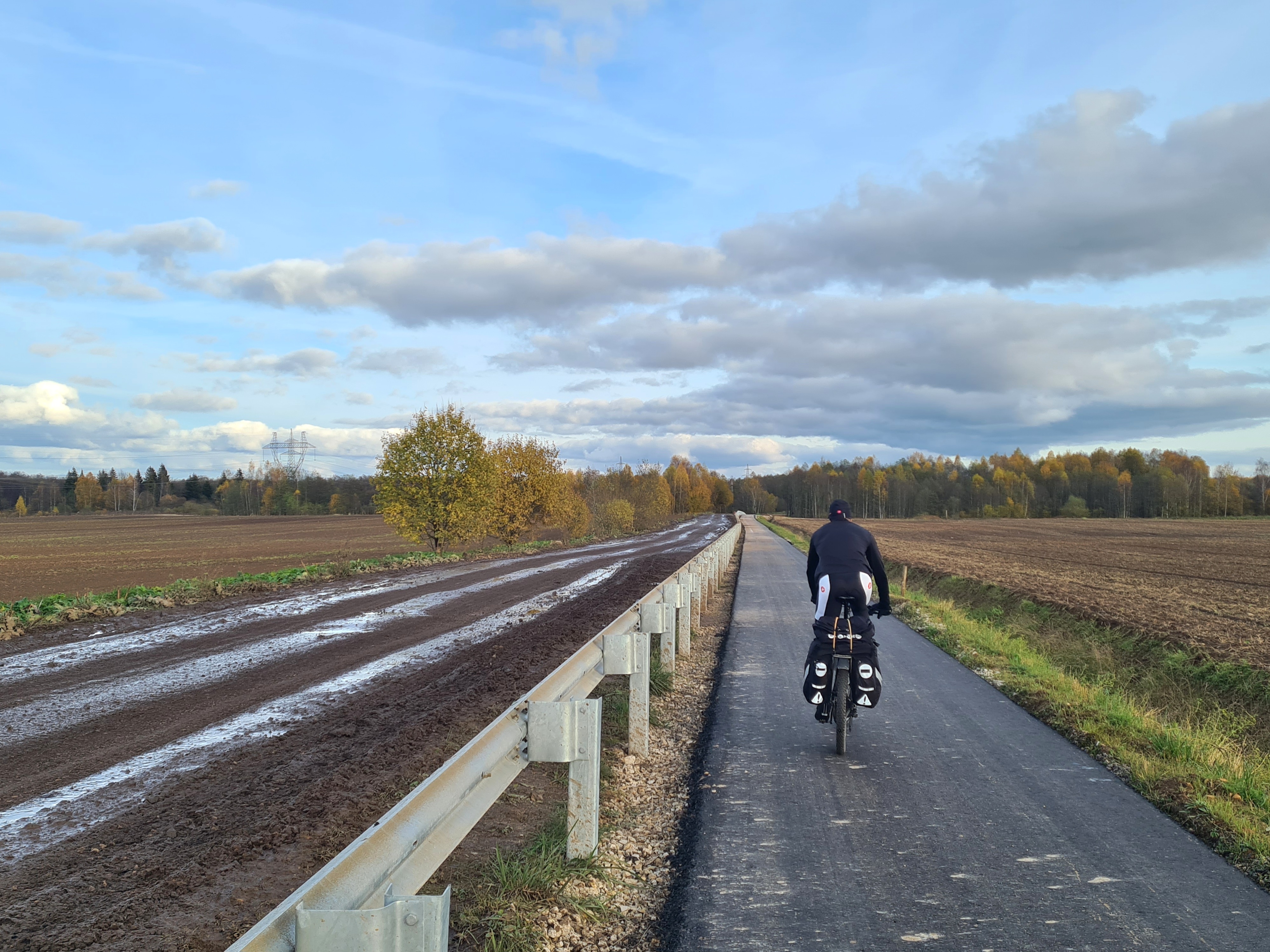 Перед Колодкино "Вело-1" идет вдоль грязнющей автодороги.