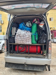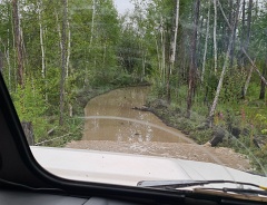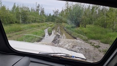 От Якутска до турбазы "Уораннах" на реке Синей - 190 км по асфальту на микроавтобусе и 75 км по таежной дороге на снегоболотоходе