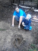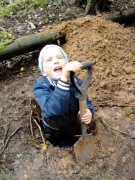 Тащит папу прокапывать ручей. |