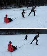 Уже в сумерках едем с вещами в пос.Пирогово |