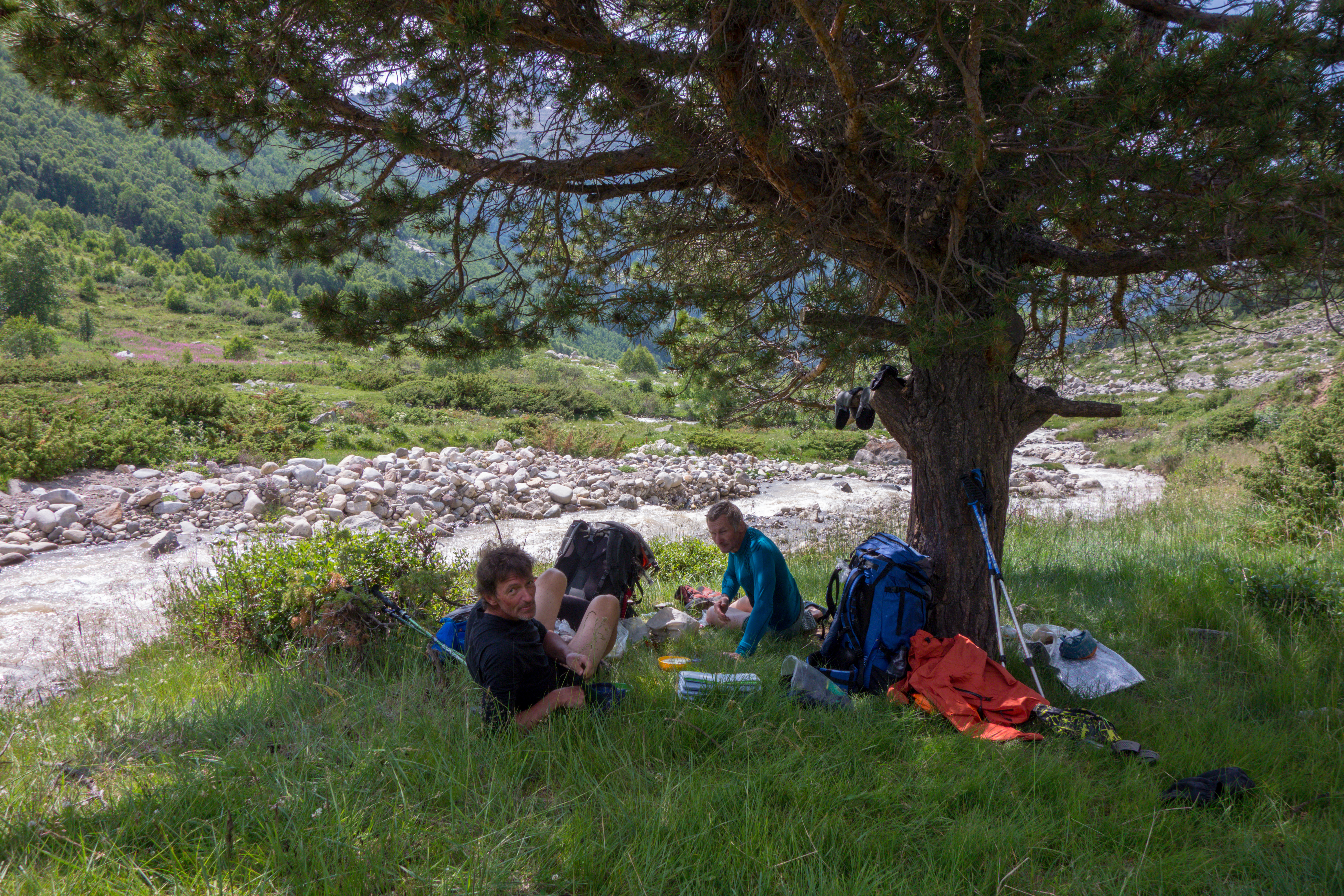 18 июля. Обед под сосной на берегу Уллу-Кам вблизи слияния с Уллу-Езень (начала реки Кубань).