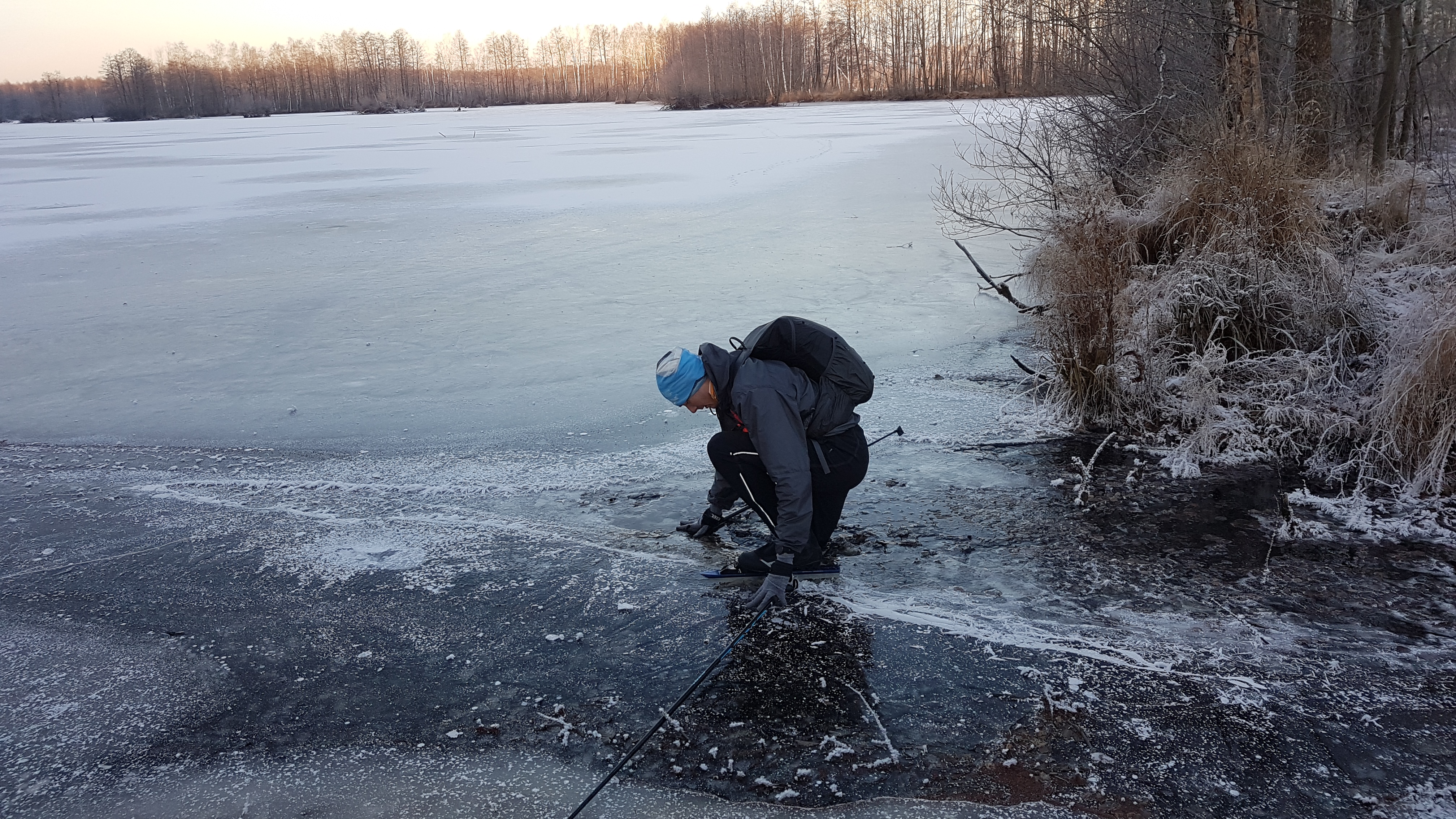 А этот парень, которого мы встретили случайно, полез прямо через протоку и провалился. Саша потом его опознал по Страве. Фотки ему отправили :-)