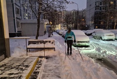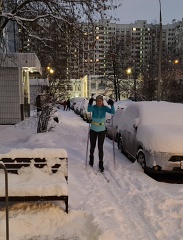 После ночного снегопада лыжи можно надевать прямо около подъезда.