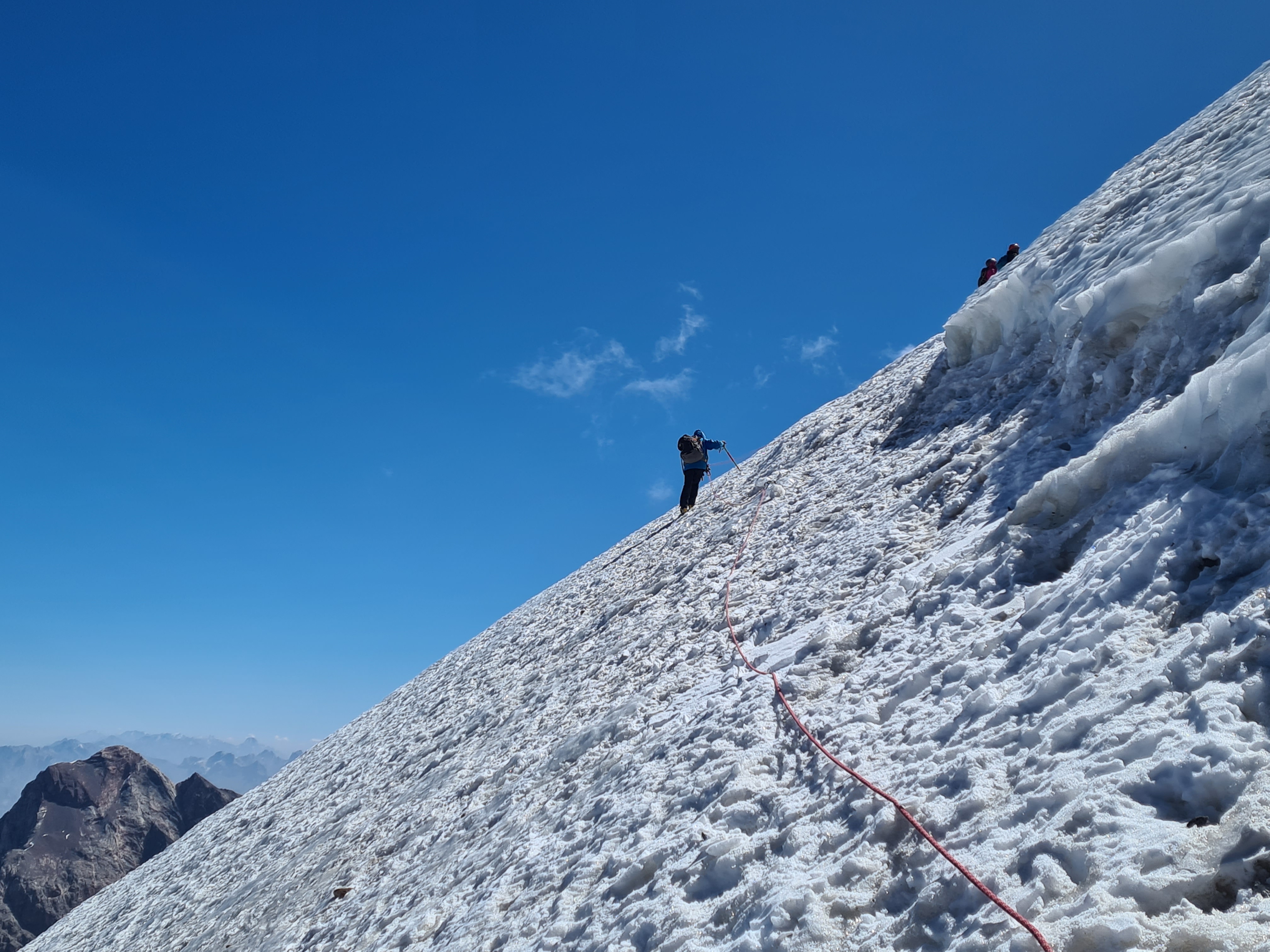 На пик Чимтарга (5489 м) мы подняться не смогли - в наших условиях нужно альпинистское снаряжение, которого у нас нет.