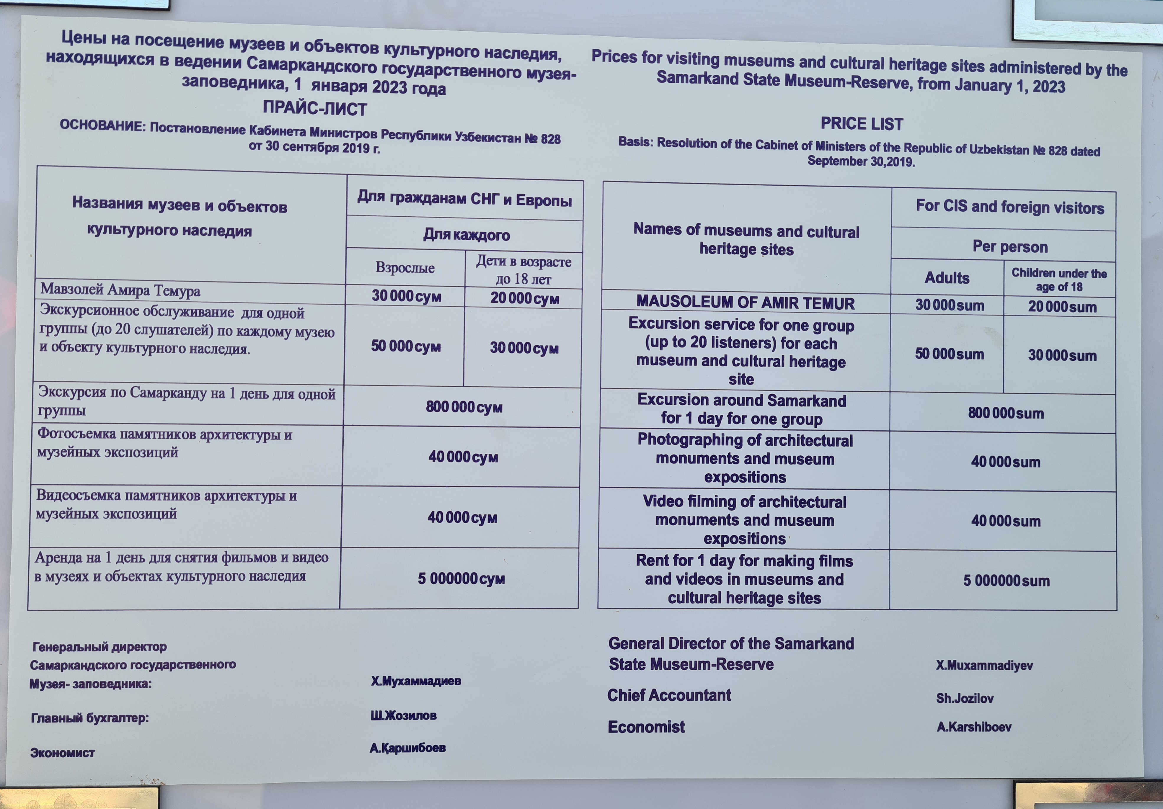 Расценки Мавзолея Амира Темура.