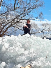 Лена показывает фотки "камешка", подаренного ей Гришей на прошлый день рождения :-) |