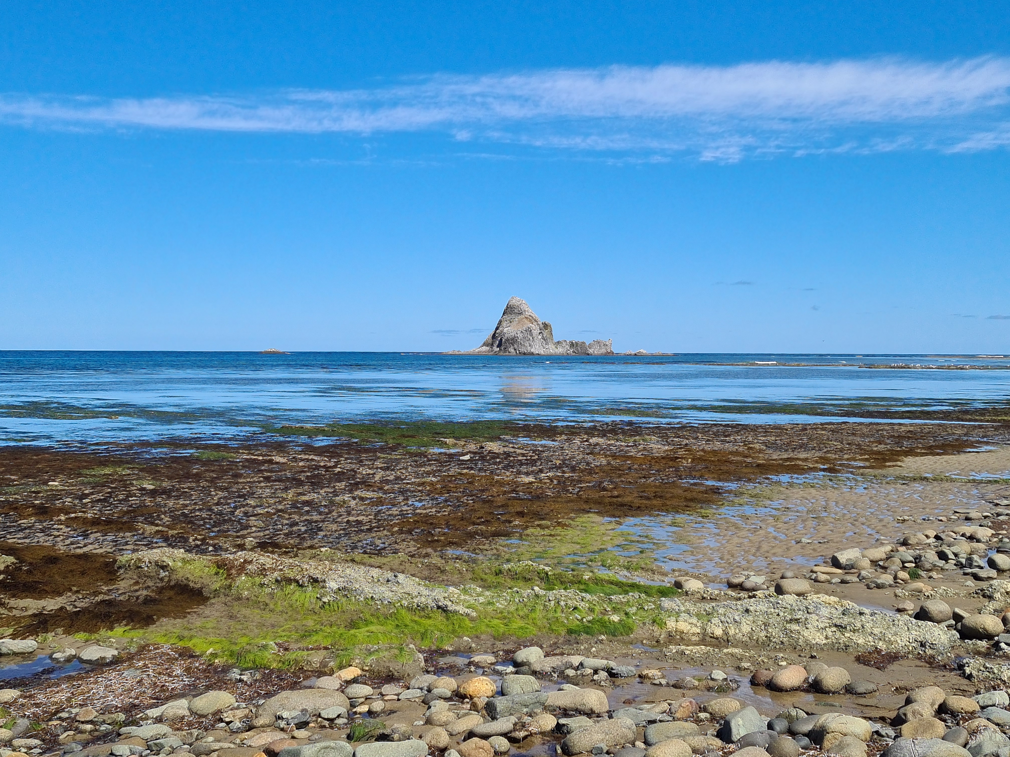 20 августа 2024. Берег Охотского моря в отлив. Виден остров Гайнутдинова.