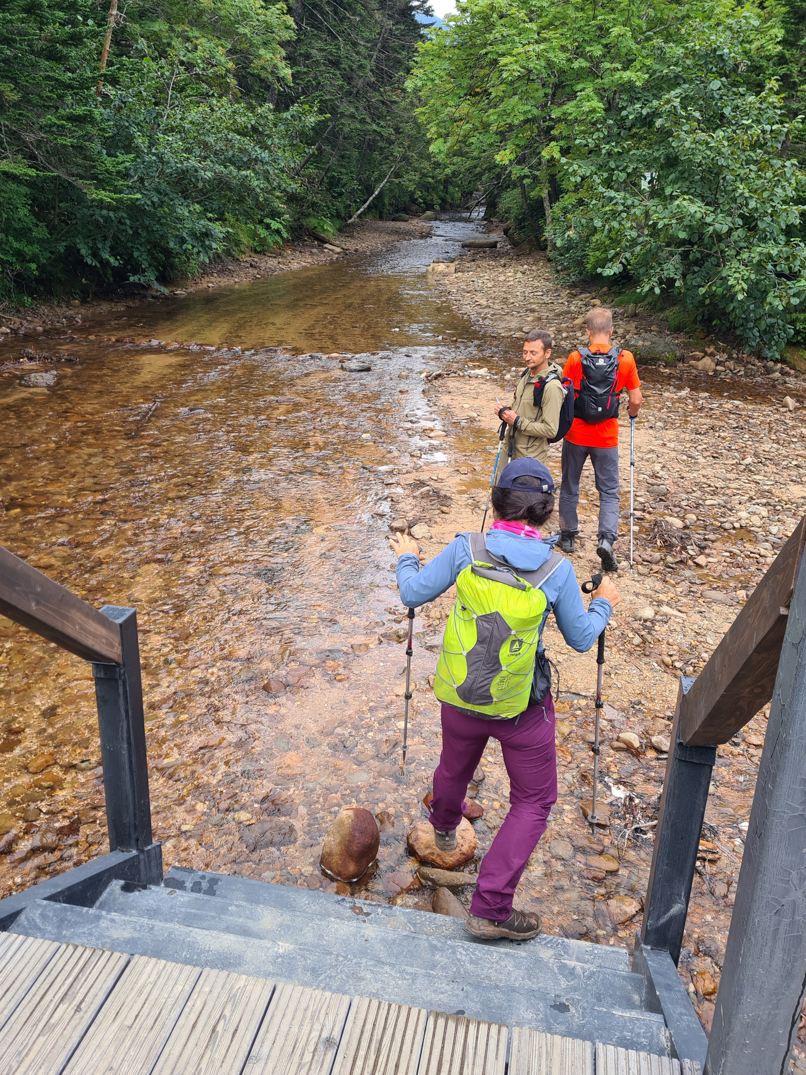 22 августа 2024. Спуск с деревянного моста через реку Лесную в ее приток - ручей Кислый.
