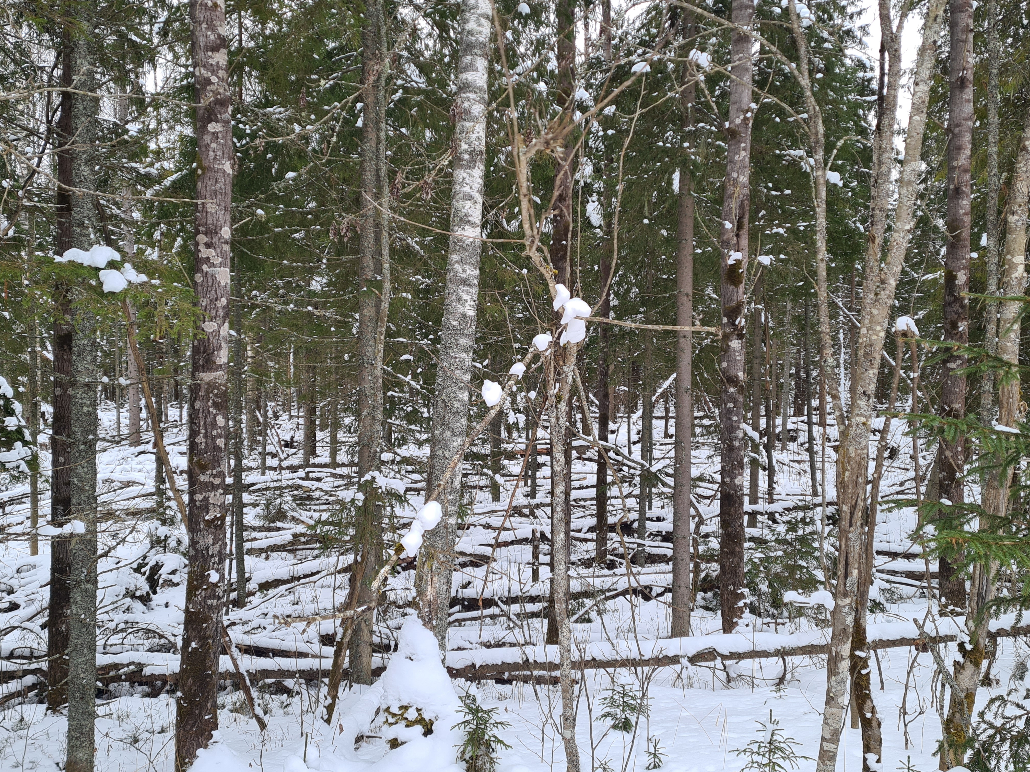 Лес справа от лесовозки местами сильно завален.