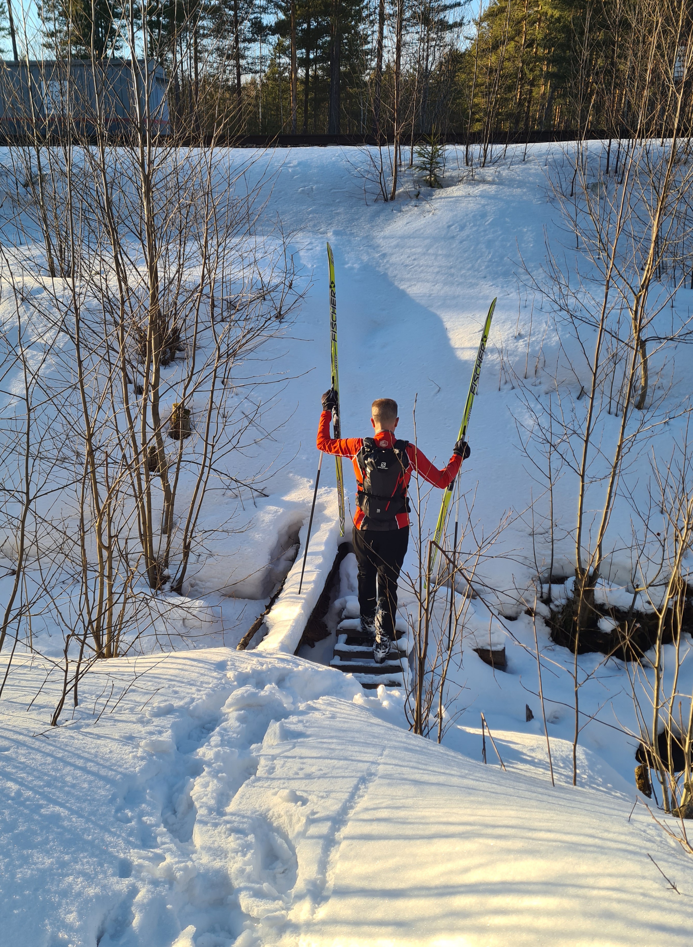 22 марта 2025. Узкий мостик через канаву вдоль ж.д. рядом с платформой 229-й км.