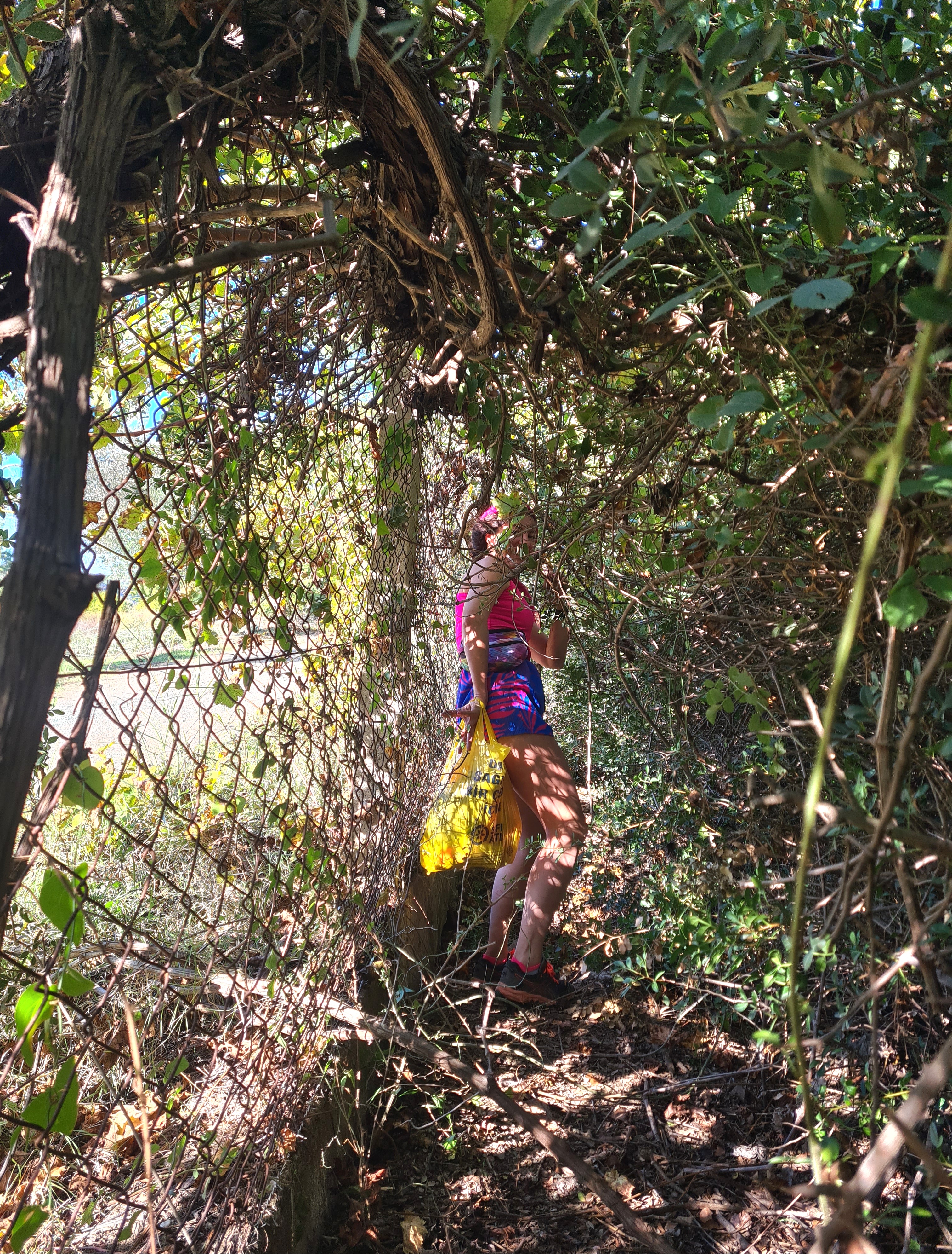 Тропа к пляжу идет вдоль забора частной территории, по зарослям с колючками.