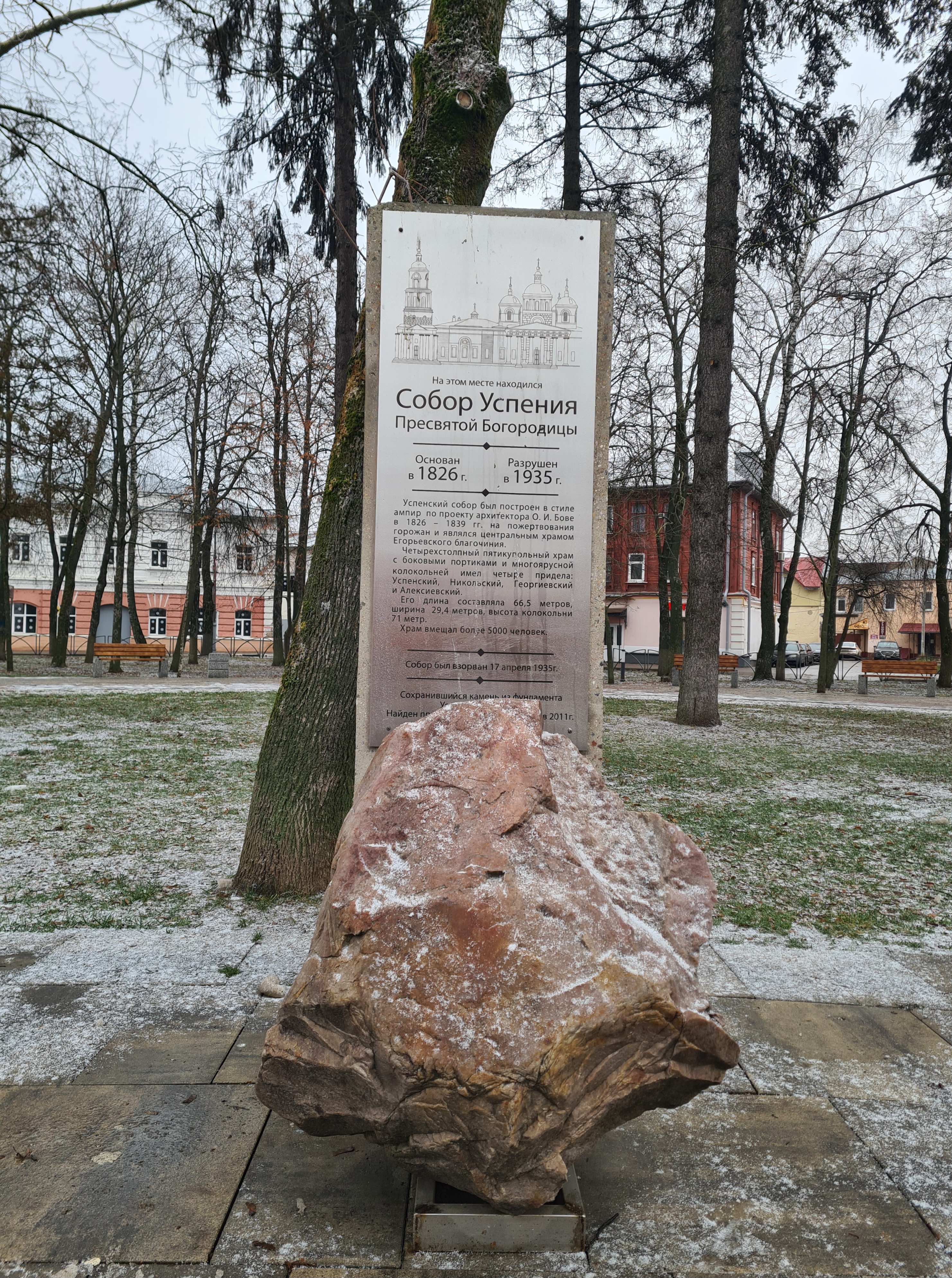 Егорьевск. Соборная площадь. Камень из фундамента Собора Успения Пресвятой Богородицы.