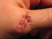 Так закончилась Димина попытка починить лыжу (разрезал руку так, что в травмпункте накладывали шов).