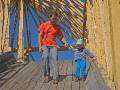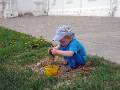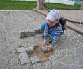 Алеша разбирает брусчатку в Коломенском Кремле. |