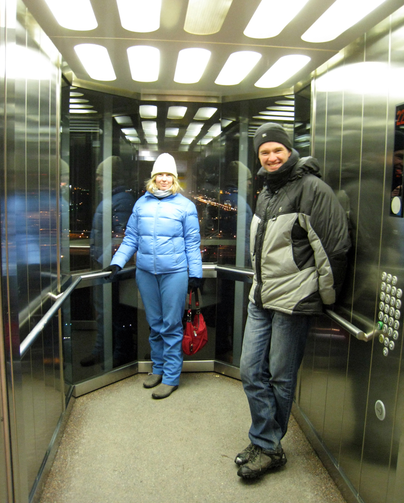 Оя и Костя в лифте.
