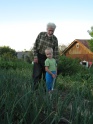 2 июля. Алеша с дедом поливают лук. |