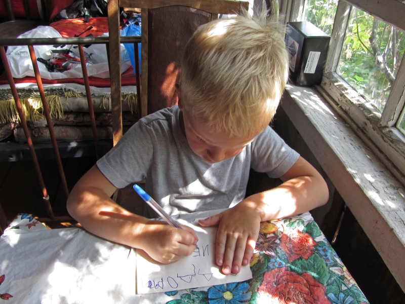 Пишет письмо.