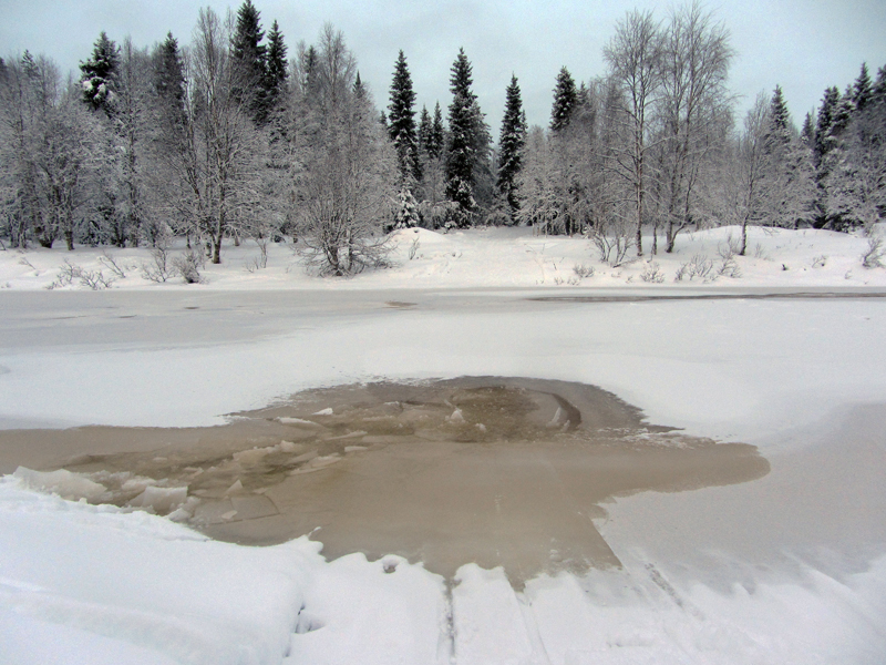 3 января. Полынья в месте пересечения пересекает реки Päräjänjoki.