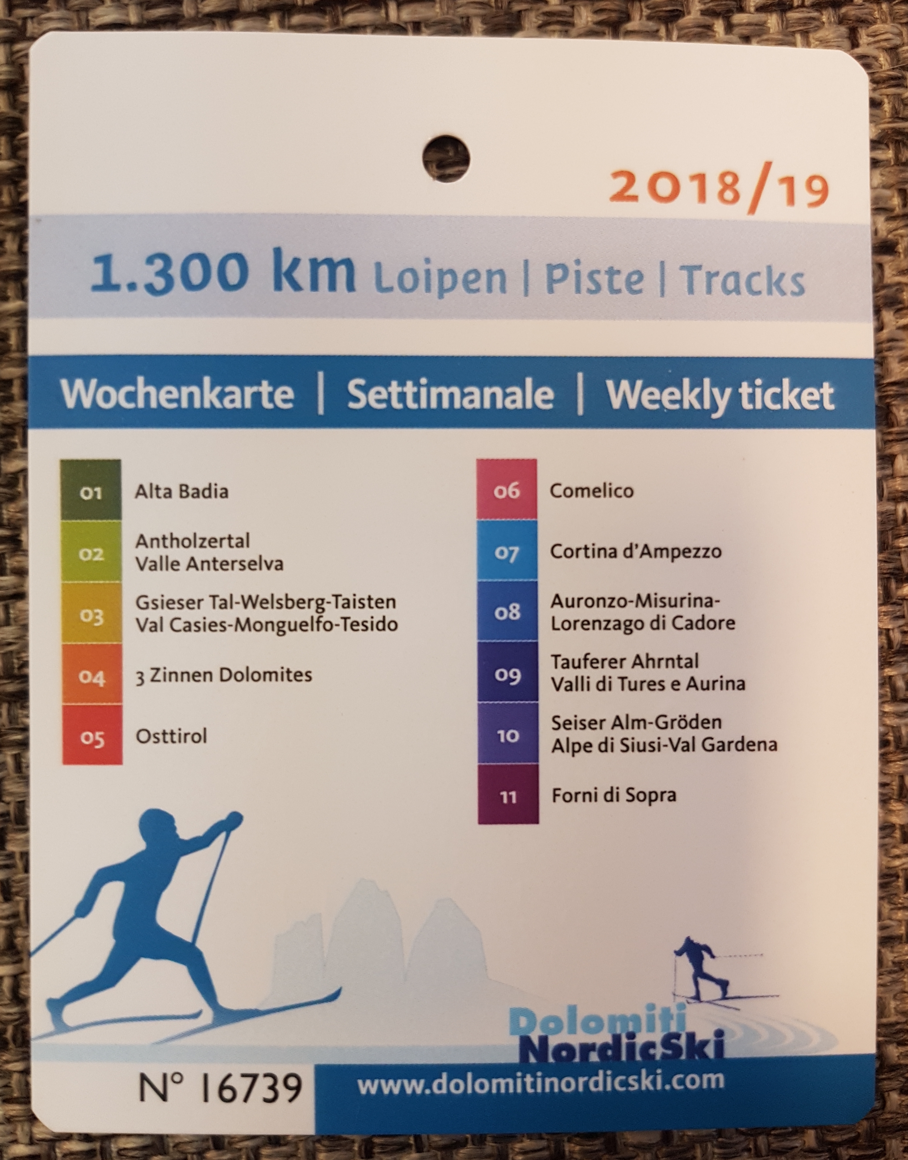 "Лыжный билет", действительный во всех 11 регионах Доломитов.
