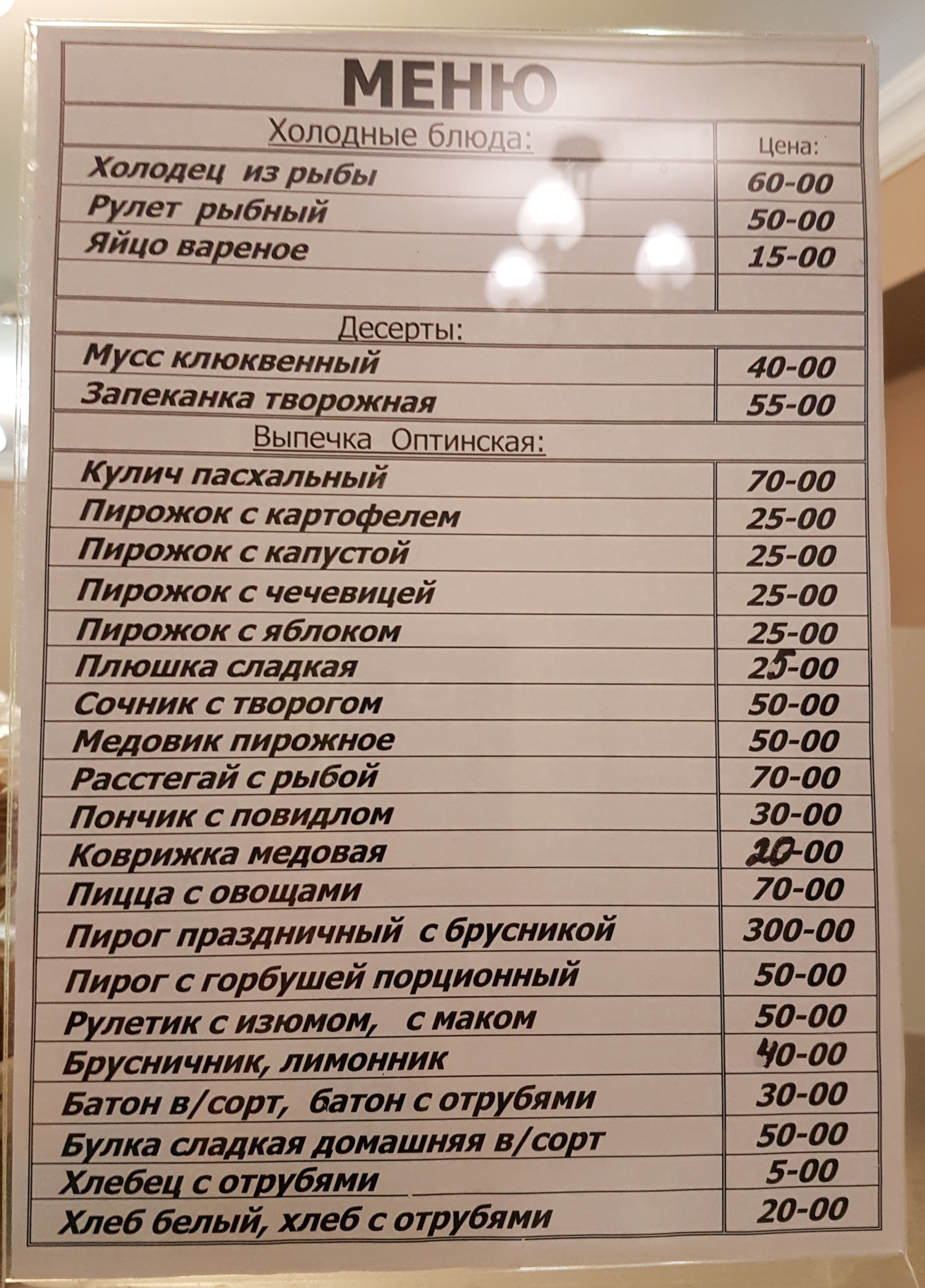 Меню "Чайной" - столовой самообслуживания.