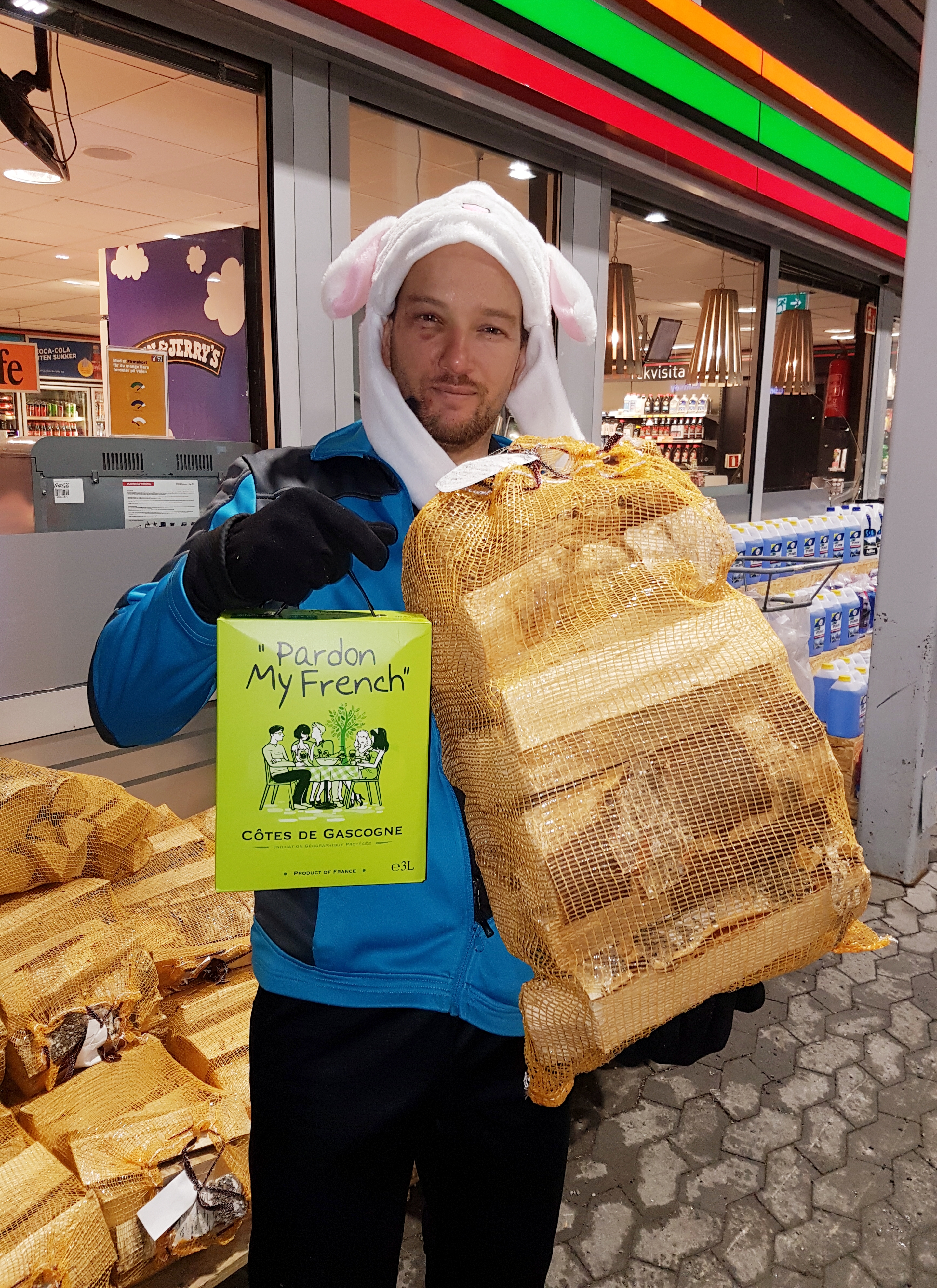 По пути домой на автозаправке купили дрова для печки.