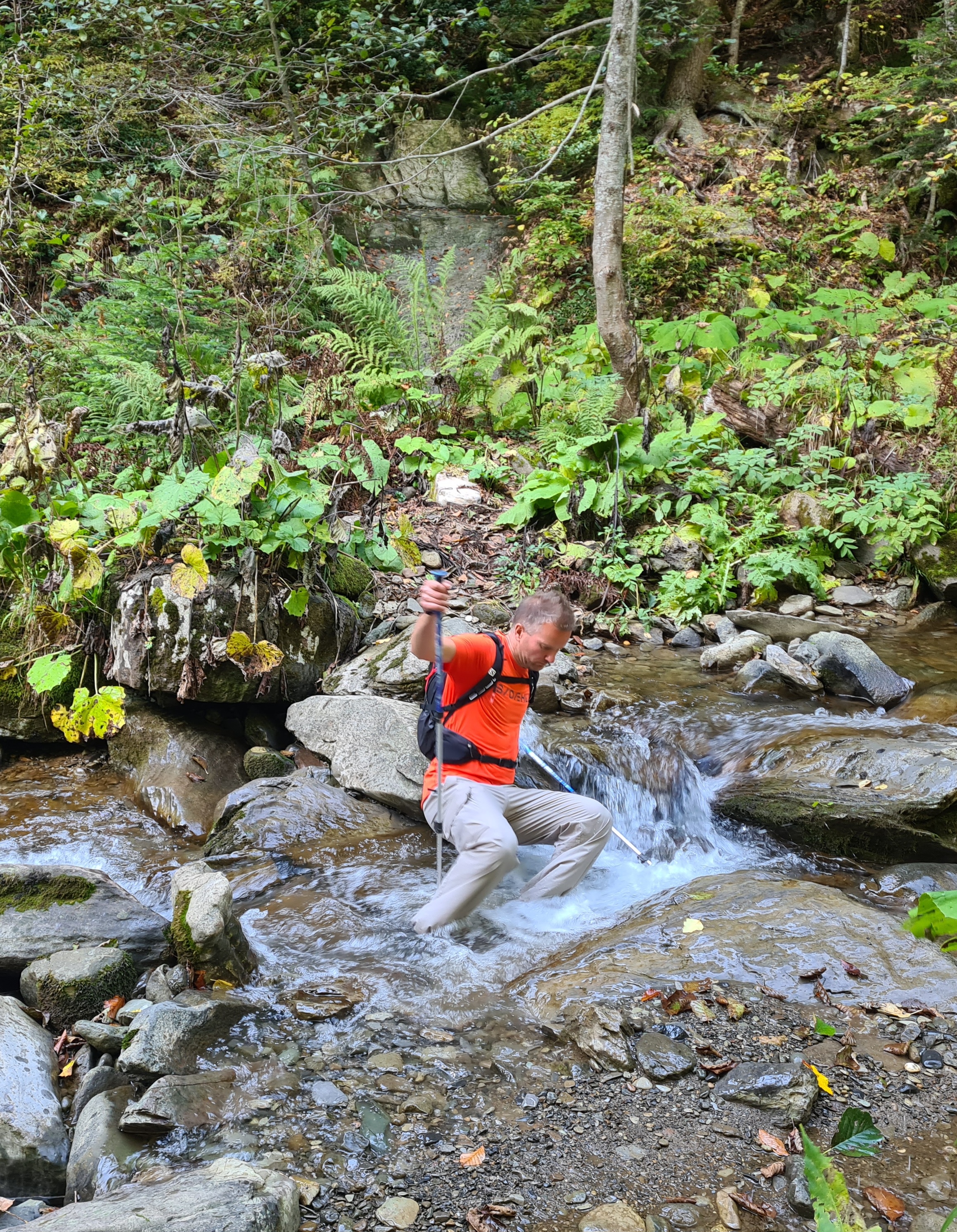 Ручей Червонный. Дима неудачно прыгнул на скользкий камень и свалился в воду.