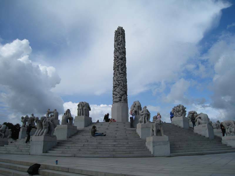 Осло, Фрогнерпарк. Главная работа Густава Вигеланна - обелиск "Монолит", многофигурная композиция из человеческих тел.