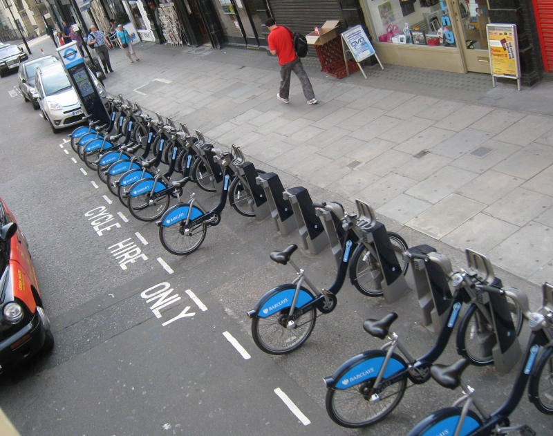 Парковка для прокатных велосипедов.