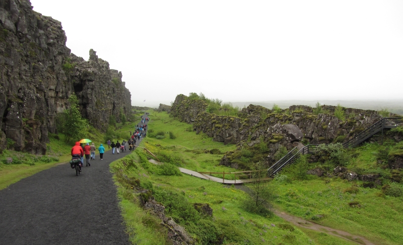 В Тингветлире евразийская и американская тектонические плиты расходятся в противоположных направлениях на несколько мм в год.