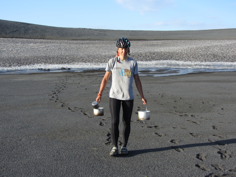 Воду брали из ручейка, стекающего со снежника.