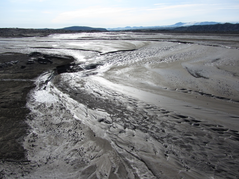 Дорога F98 проходит по руслу реки, стекающей с ледника Vatnajökull (Ватнайёкюдль).