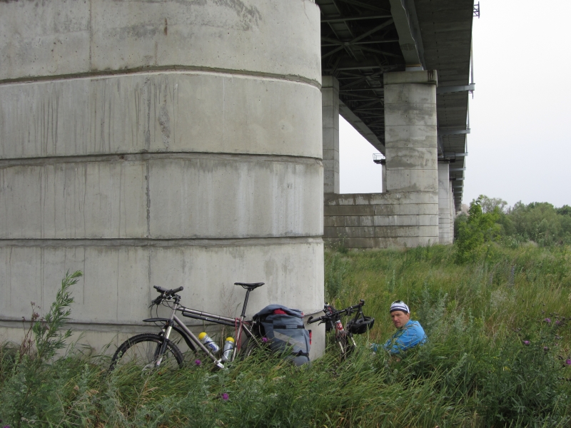 Пережидаем дождь под мостом через Дон вблизи Нововоронежа.